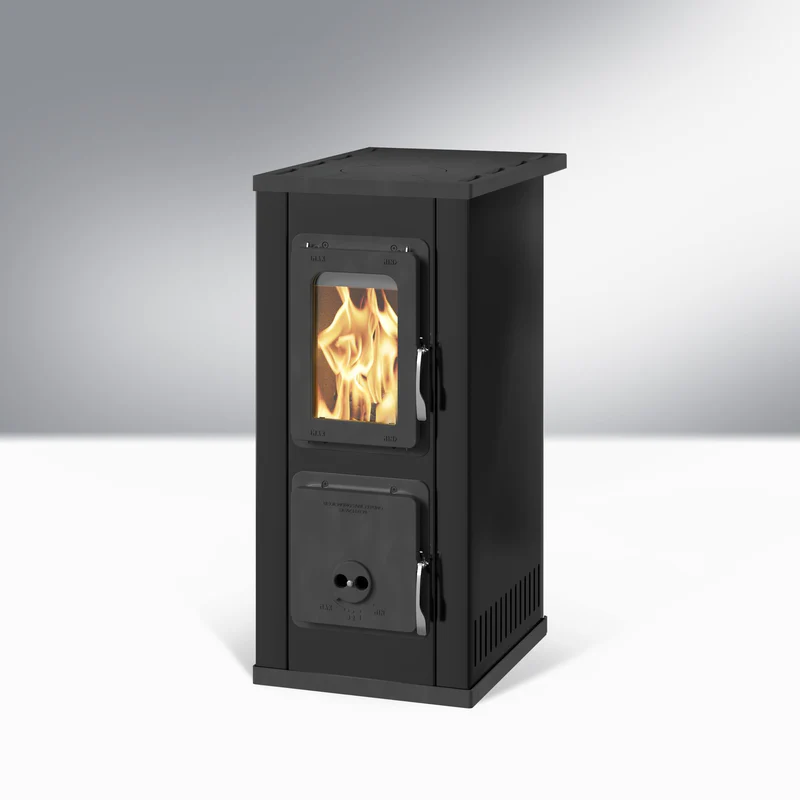 Flensburg III är endast 400 mm bred, fast dess djup på 600 mm är imponerande! Den här kaminen utmärker sig som en fin pjäs i köket.
