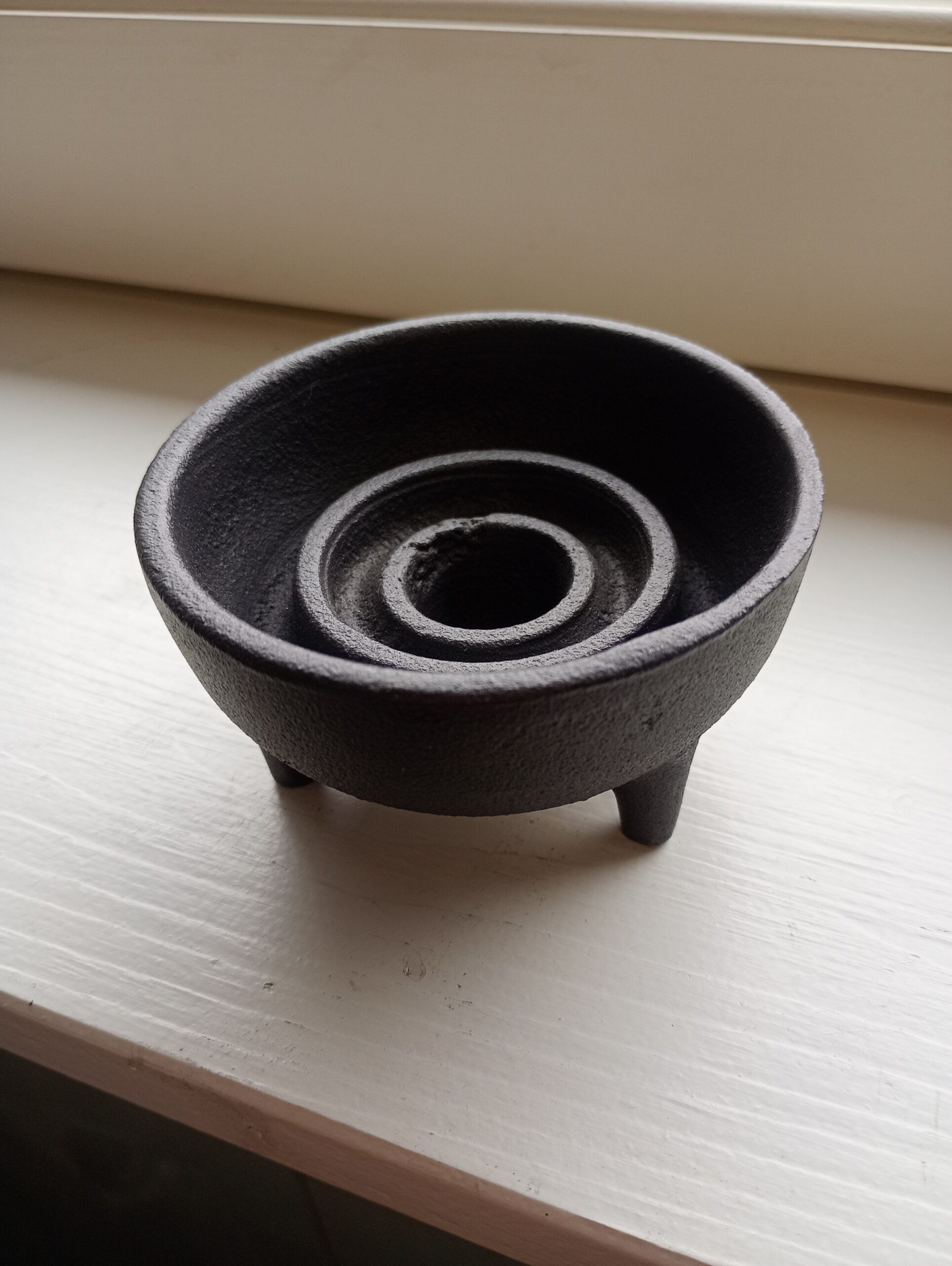 En vacker ljusstake i gjutjärn, med tre innermått: 75 mm, 42 mm och 22 mm. Höjd: 50 cm.